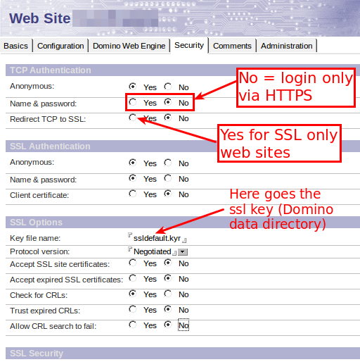 - If you decide, that any authenticated connection must use HTTPS all the time you can configure the HTTP server to do so. In your server document you should have switched to "Load Internet configurations from Server\Internet Sites documents" long ago. If not, now is the time.